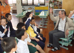 日 期:97年11月11日地 點:特教班、校史室活動內容:本校特教班創辦人---比利時「潘爾溫」神父蒞校訪視,由施校長親自引領 參觀特教班小朋友課堂的學習活動情形,也接受校內10位小記者的採訪, 分享了創辦的歷程與感想,最後並對本校的特教設施及多年來優異的教學 成果給予極佳的讚譽與寄盼。