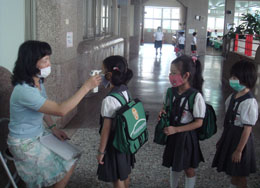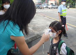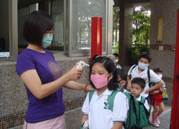 導師於學生進入教室時量體溫 確認身體狀況是否良好