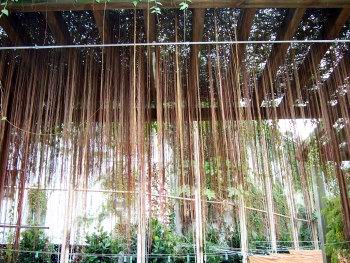 來到「天染花園」。首先映入眼簾的是一大片各式各樣的植物,到處都是奇花異草,彷彿自己正徜徉在大自然的懷抱中,這種感覺真是舒服。而且栽種在這裡的植物,每一種都能染出繽紛的色彩呢!你一定會很好奇,為什麼一株小小的植物,竟然能染出這麼多的顏色!難道它們身上藏有什麼秘密嗎?現在我們就來一探究竟,下面這些植物就是具有神奇魔力可染色的植物喔!有染紅褐色的錦屏藤及大葉欖仁、染藍色的木藍、馬藍、染黃色的福木、毛柿、薑黃、染粉橘色的山櫻花,還有還有就是很特別的墨水樹,染出來的顏色非常接近黑色,平常植物染成黑色是很麻煩的,就像水彩要調黑色一樣,要用很多顏色分調很多次,有了墨水樹以後只要染一次就是黑色了。