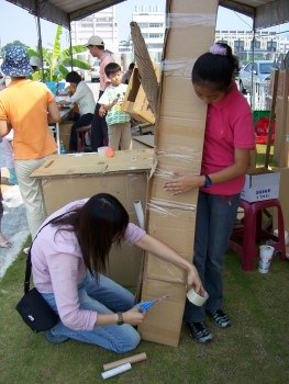 creativity. For example, we made a castle by paper boxes and newspaper.