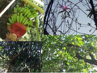 The bananas, peach tree, mangos, cummingcordiaes (Sebastan Plum Cordia )