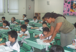 G1 Science Class~Teacher Delou協助小組算出豌豆數量