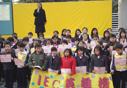 IEC期末考成績表現優異的小朋友於升旗時接受表揚