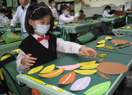一年級小朋友進行感恩節卡片製作。