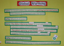 小朋友指著圖片 以流利的英文表達自己的想法。