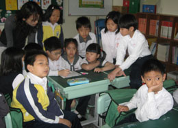 外師和低年級小朋進行口語練習。