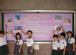小朋友認真的去了解世界七大奇蹟。