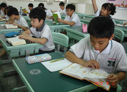 二年級小朋友認真朗讀的神情。