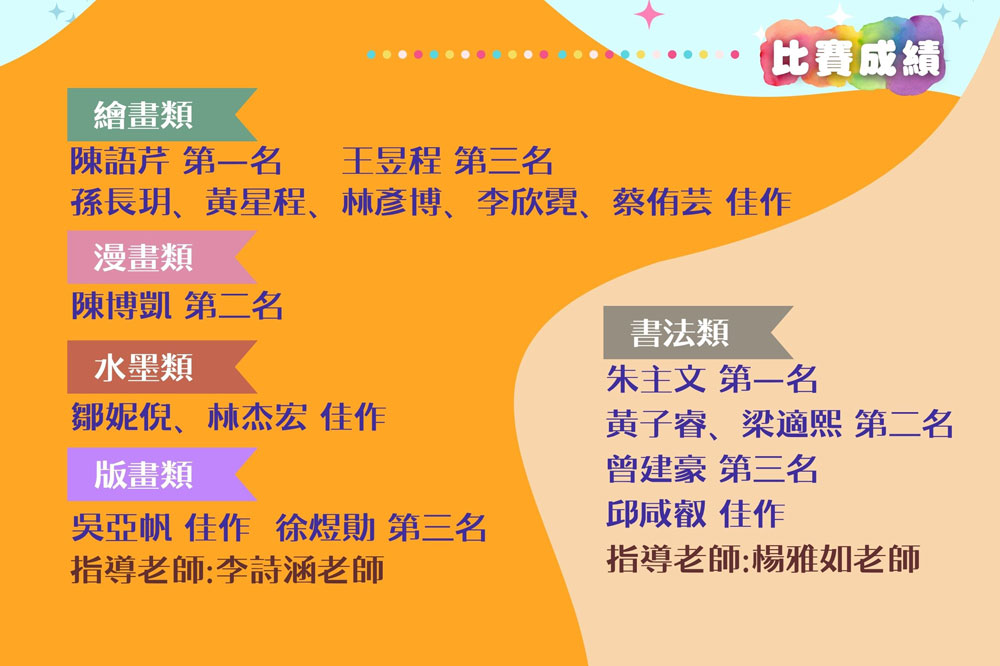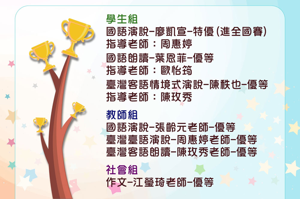 89學年~101學年得獎記錄 102學年得獎記錄 103學年得獎記錄 104學年得獎記錄 105學年得獎記錄 106學年得獎記錄 107學年得獎記錄 108學年得獎記錄 109學年得獎記錄 110學 年得獎記錄 111學年得獎記錄 112學年得獎記錄 113學年得獎記錄
