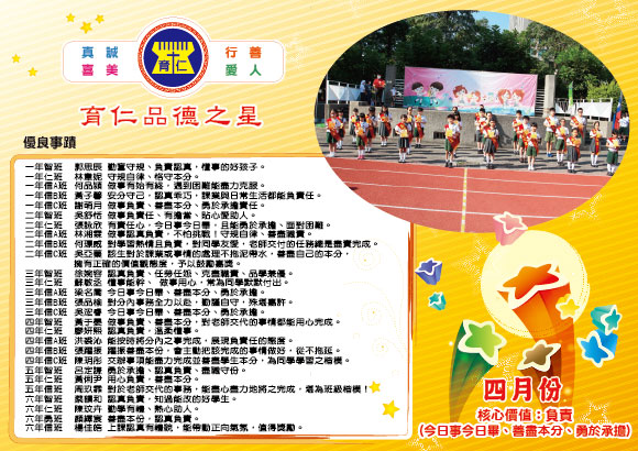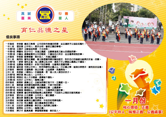 108學年度(上)臺中市私立育仁國民小學品德之星選拔
