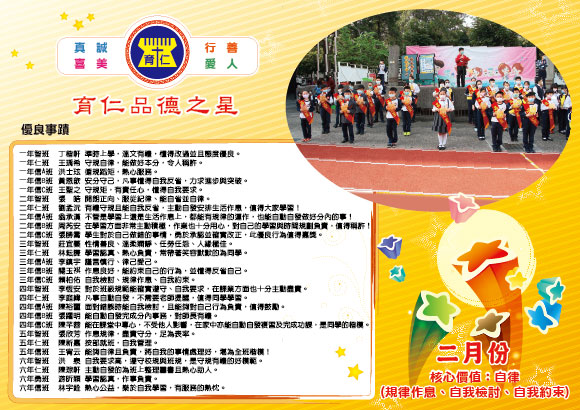 108學年度(下)臺中市私立育仁國民小學品德之星選拔