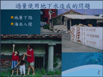 由於嘉南地區的隆雨量少,居民常常抽取地下水,過度抽取地下水的結果是地層下陷,和海水入侵,目前雲林和彰化地區的問題最為嚴重。