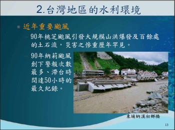 每年幾次的颱風登陸台灣,對於年紀還小的我來說,我總是期待放颱風假,今天上了課程後,看到過去颱風造成的嚴重損失,那些驚人的數據,讓我感到慚愧極了!而且藉著簡報和說明,我拼湊出完整的台灣水利的故事,不再是模糊的新聞事件,是個豐富的知識之旅。by林于晴