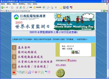 參加2005世界水質監測日,我們於9月25日去水質監測,在監測後必須上傳數據,經過學生整理資料,而楊老師利用主辦單位提供下載XnView軟體處理,將照片解析度調成72dpi及尺寸800*600,我便上網登錄,將監測資料及照片上傳才算完成。 主辦單位會將台灣所有參加的隊伍數據,傳到美國匯整世界各國的資料,喚醒民眾持續參與監督及保護地球上的水資源。by盧書錦