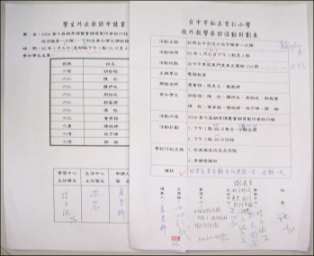 今天早上又打電話給河川巡守隊第二大隊的隊長陳如玲女士,她是台中市北區長青里的里長夫人,詢問之前是否和他們一起去河川巡守,可是由於他們是機動性,所以不行;另外訪問的話,隊員白天都要上班,及有些住的很遠,所以不方便,讓我們有些失望。 後來,詢問是否有資料可以提供給我們,她很熱心的說有「94年度台中市清淨河川考核-年終考核成果報告書」可以借我們參考,在問完地址及詳細地方,便利用早上空堂的時間前往。 到那裡,除了借到書之外,還有一張台中市水環境河川巡守隊通報紀錄單及一本台中市水環境河川巡守隊的名冊,另外還提供一些他們活動照片,真是感謝她的幫忙。 by盧書錦