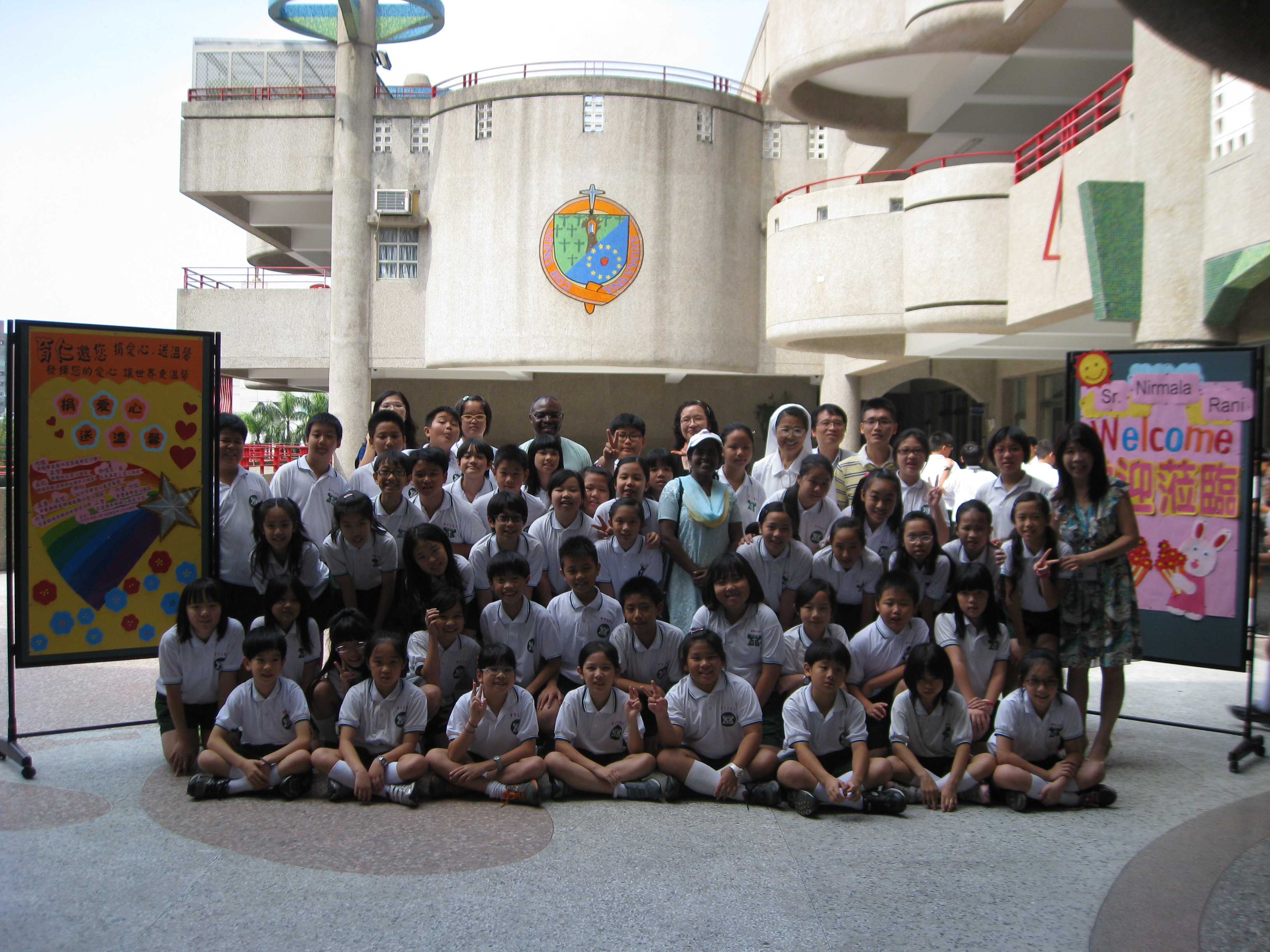Sr. Nirmala Rani與司馬添神父、校長、師生合影留念